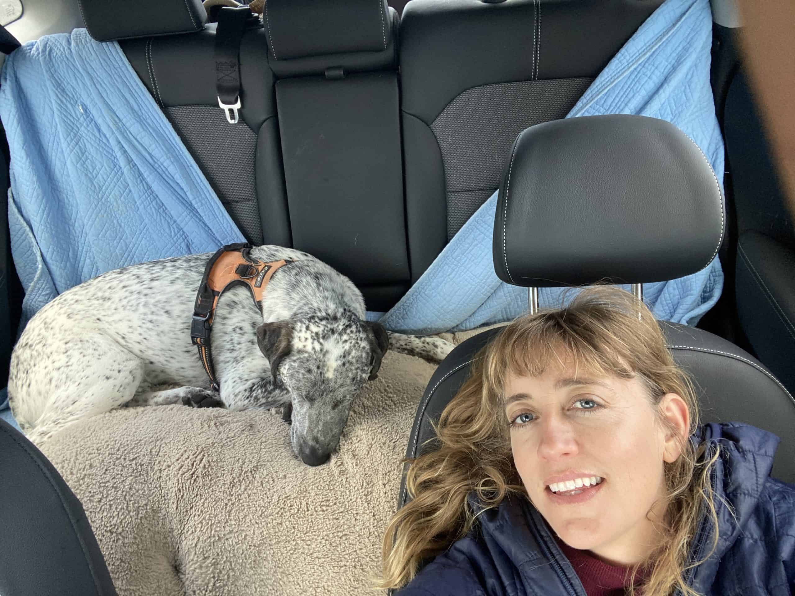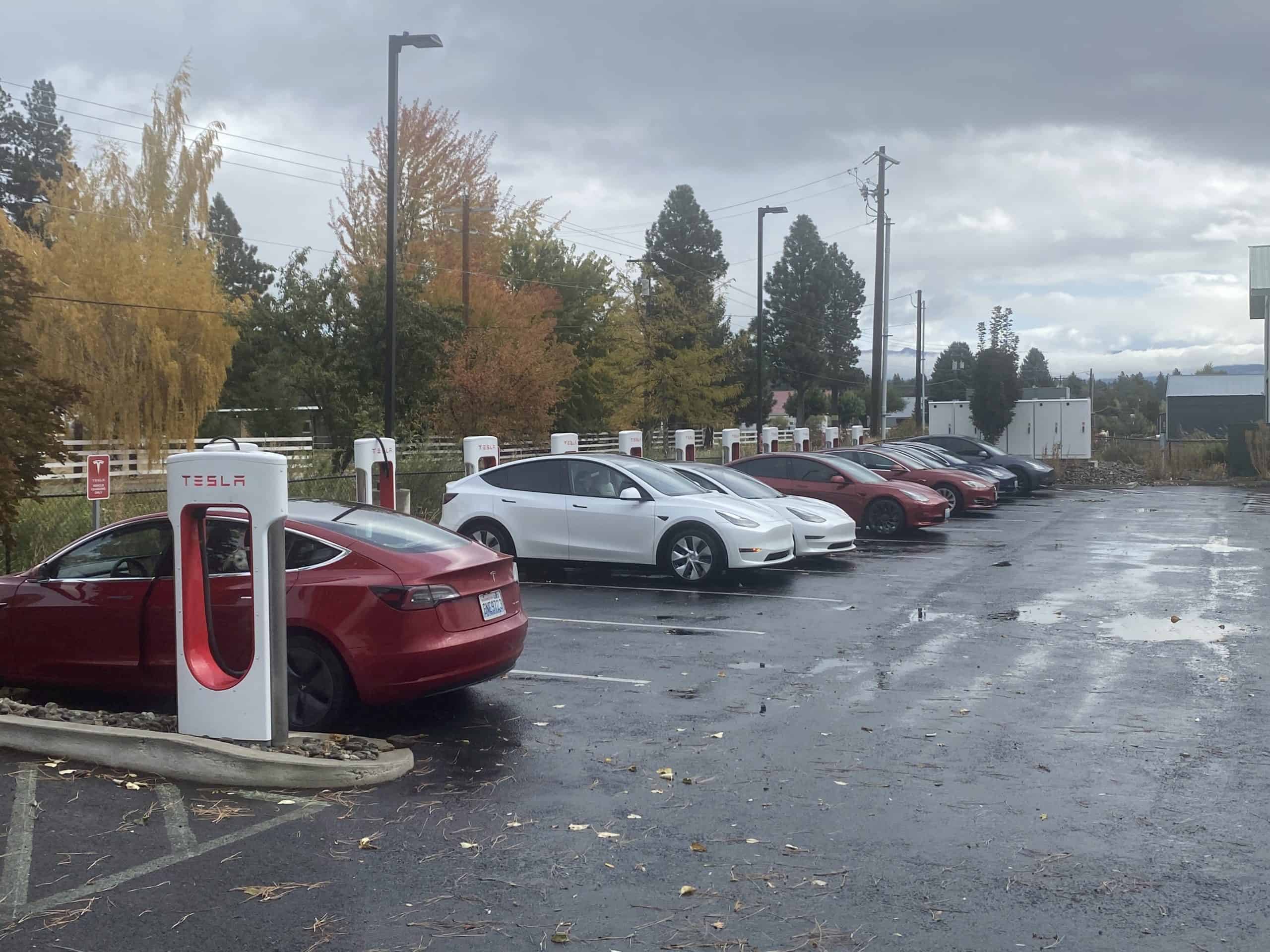 306 miles to get home. A couple of charging stops (Taco Bell and Walmart) and let the pup run around.